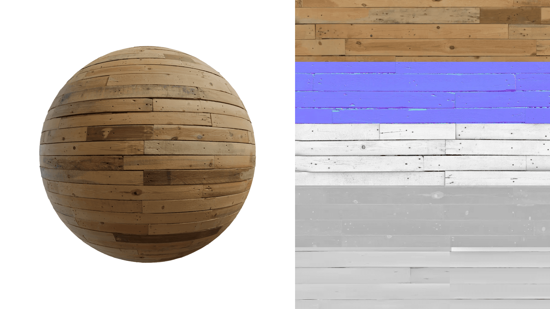 Tillsammans kombineras denna information till ett material som vi kan applicera på modellen och få den att kännas levande och realistisk.